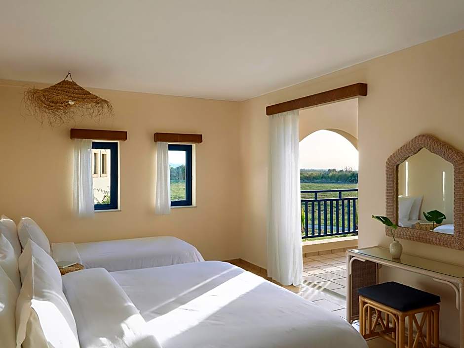 This air-conditioned room offers a seating area with sofa and satellite TV. It has a balcony with garden views.